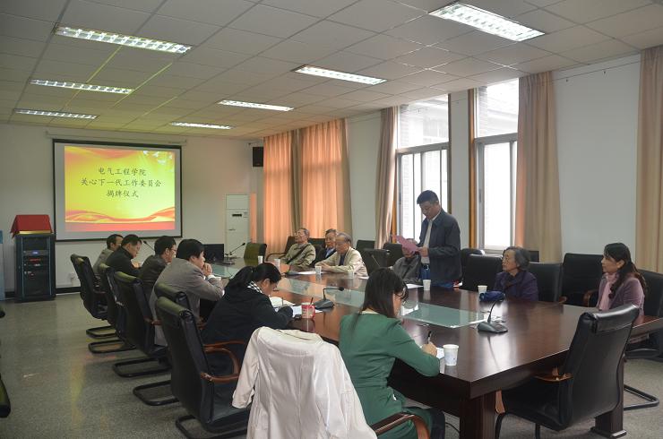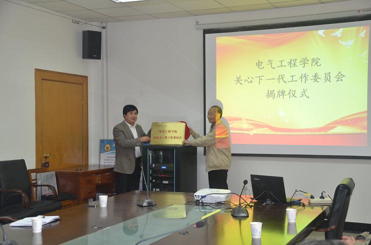 2013年10月31日,电气工程学院关心下一代工作委员会正式挂牌。校关工委常务副主任吴介一、校关工委常务副秘书长张楠等同志出席仪式,电气工程学院院长黄学良、党委书记冯建明、副书记杨蕙及学院其他关心下一代工作委员会成员、教工党支部书记、青年教师代表等参加。