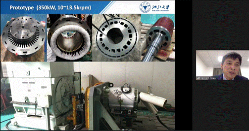 浙江大学沈建新教授在题为《Multi-Physics Design of High Speed Permanent Magnet Synchronous Machines》报告中介绍了考虑多物理场的高速永磁电机的设计方法。沈教授以一个350kW的大功率高速永磁同步电机为例,讲解了其设计过程,设计中首先考虑电力电子方面的电流电压限制,再对电磁场、转子应力以及温度场等多个物理场进行分析,最后完成电机设计。
