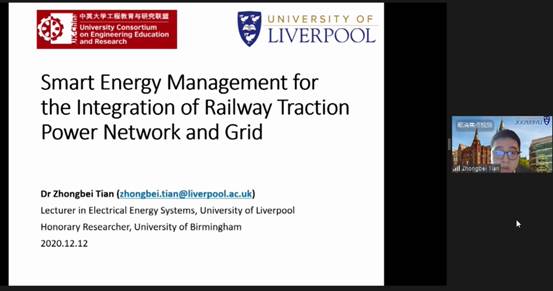 利物浦大学的田忠北教授在《Smart Energy Management for the Integration of Railway Traction Power Network and Grid》主旨演讲中介绍了英国铁路电气化的发展现状、可持续交通能源整合与优化,以及铁路电网接入电网的研究内容。