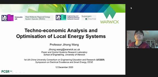 华威大学王吉红教授在《Techno-Economic Analysis and Optimisation of Local Energy Systems》主旨演讲中介绍了未来校园能源系统项目的成果,对校园能源系统的规划及优化控制方法进行了介绍和展望。