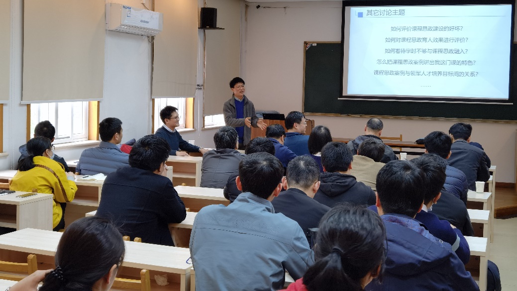 在讲座的讨论环节中,3位受邀专家与我院教师一起就课程思政实施过程中的热点问题进行了热烈的交流讨论。最后,吴在军书记代表学院向讲座专家表示了感谢,并强调了教育不能只停留在知识传授、能力培养的层面,学院的各位老师更要通过课程思政来完成对学生的价值塑造,从而回答“培养什么样的人”、“如何培养人”、“为谁培养人”的问题。