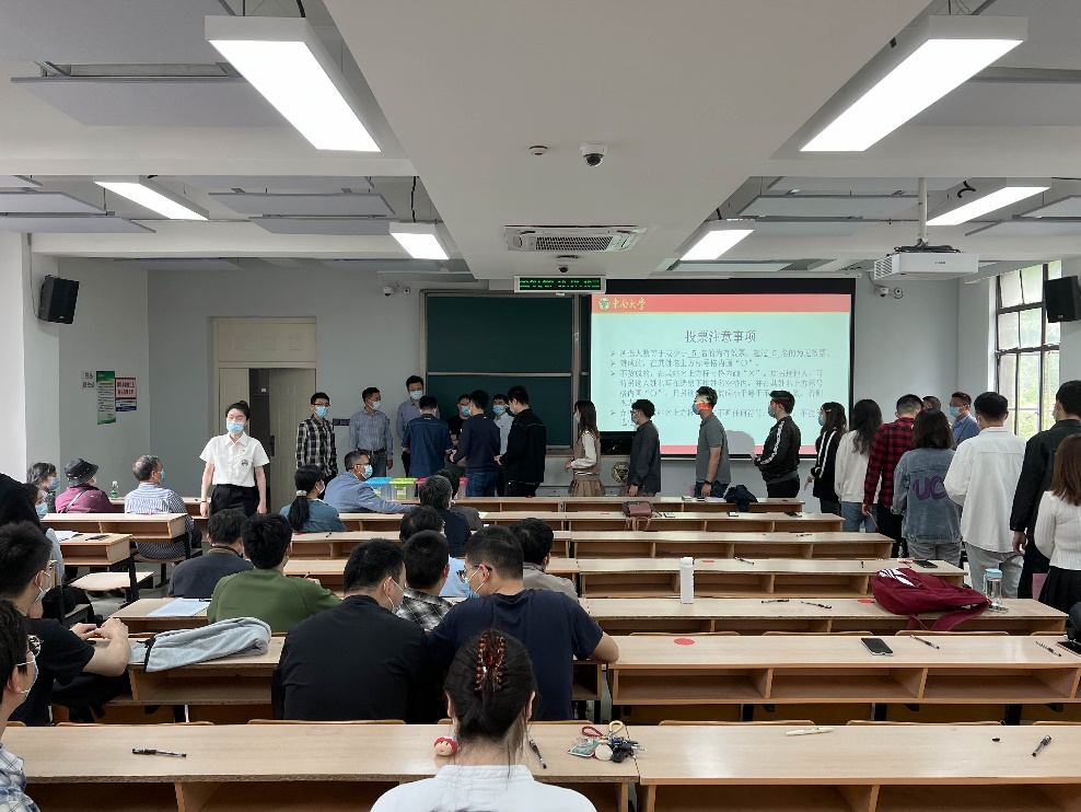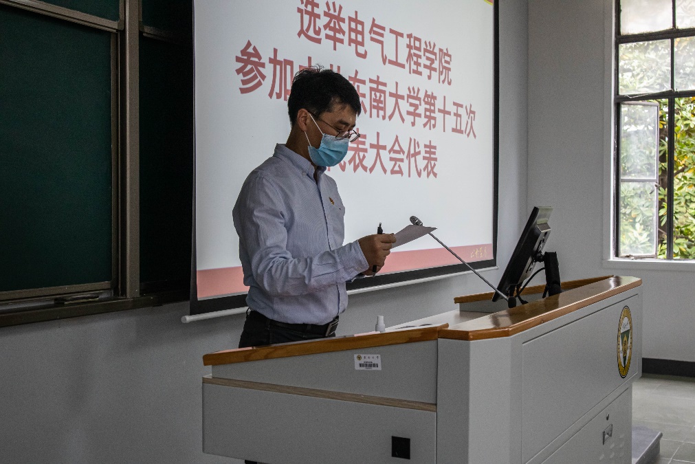 经过工作人员紧张有序的计票,总监票人向大会报告了计票结果。根据计票结果,大会主持人向大会宣布:付小鸥、吴在军、顾伟、高山、程明等5位同志(按姓氏笔画为序)当选为电气工程学院出席中国共产党东南大学第十五次代表大会的代表。