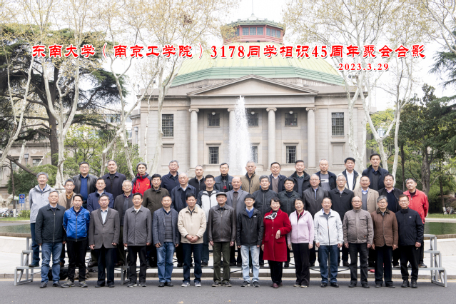 在莺飞草长、桃红柳绿的春风里,东南大学(南京工学院)3178级同学迎来了相识45周年的日子。45年前的金秋十月,他们青春年少,激情澎湃走进南京工学院这个神圣的知识殿堂,开启了探求知识、追求理想的大学学习;45年后的春天,他们夕阳无限,回到东南大学四牌楼校区,回忆同学趣事,畅谈同学情谊,共同感恩母校。