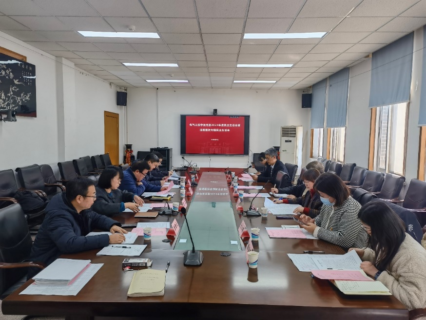 2025年2月24日,电气工程学院党委召开2024年度民主生活会暨巡视整改专题民主生活会,深入学习贯彻习近平新时代中国特色社会主义思想和党的二十届三中全会精神,巩固深化党纪学习教育成果,综合发挥党的纪律教育约束、保障激励作用,为进一步全面深化改革、推进中国式现代化提供坚强纪律保证;严格落实学校党委第六轮巡视整改要求,以思想整改带动行动整改,以民主生活会成效提升整改质量。校党委常委、副校长黄大卫到会指导,校党委巡视工作办公室主任李瑛、校纪检监察机构第二纪检监察室主任周明阳、校党委组织部副部长付小鸥、校党委巡视工作办公室副主任纪静、校党委巡视工作办公室秘书潘亚豪应邀出席会议,并就相关问题提出建议,学院领导班子全体成员参加会议并发言。会议由学院党委书记郑建勇主持。